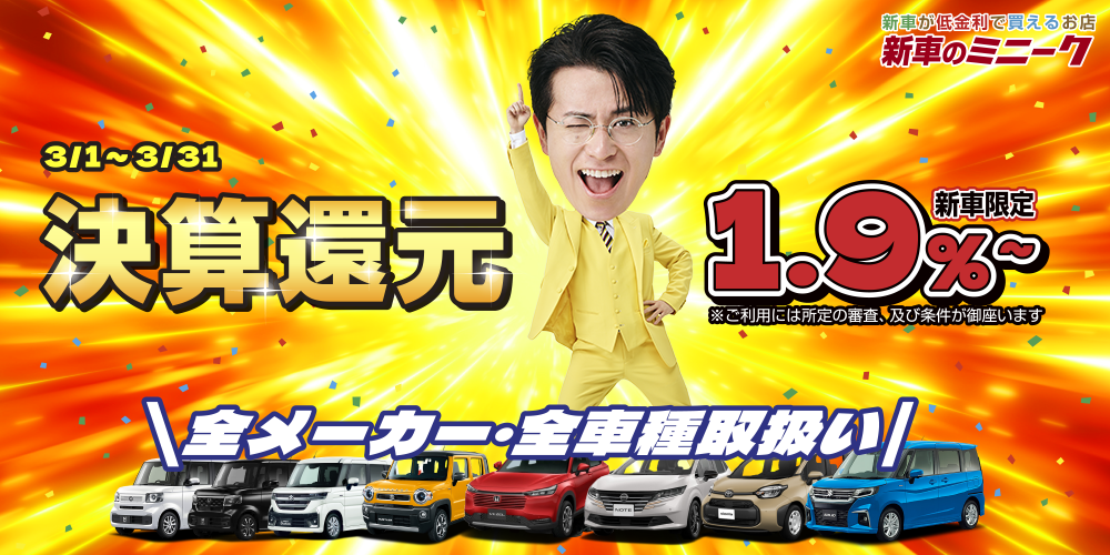 カーミニーク グループ店舗では、軽自動車~普通車、国産全てのメーカーを取り扱っております。(トヨタ、ホンダ、ダイハツ、スズキ、日産、三菱、マツダ、スバル)